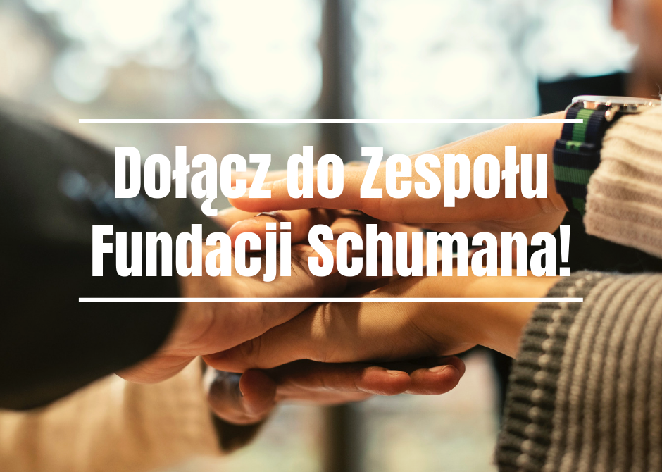 Osoby zainteresowane pracą prosimy o przesyłanie wypełnionego kwestionariusza(w języku polskim) na adres praca@schuman.pl do 14 sierpnia 2020 roku. W temacie wiadomości prosimy wpisać: „Praca w Fundacji – oferta”. Ewentualne pytania należy wysyłać na adres praca@schuman.pl (wpisując w temacie „Praca w Fundacji – pytanie”). Wybrani kandydaci/kandydatki zostaną zaproszeni/zaproszone na rozmowę kwalifikacyjną. Ze względu na ograniczone zasoby nie jesteśmy w stanie odpowiedzieć na wszystkie oferty.